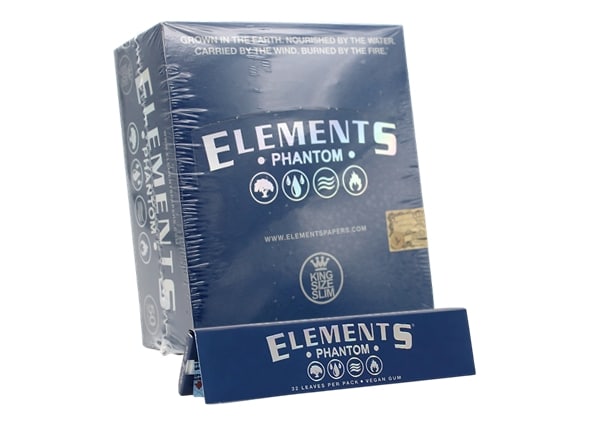Elements Phantom King Size Ultra Thin Rolling Papers. 50 Packs in a Box Display with 32 Leaves Per Pack.