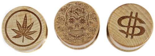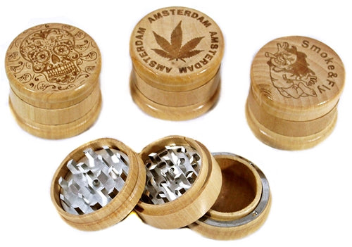 Etched Design 60mm Wood and Metal 3pc Tobacco Grinder. 6 Grinders In A Box Display.