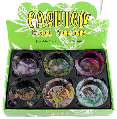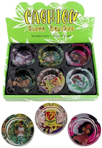 Fashion Glass Ashtray – Ladies. 3.5″. 6 Ashtrays in a Box Display.