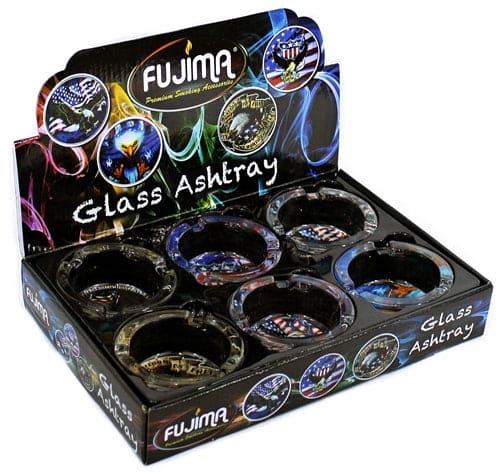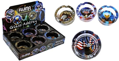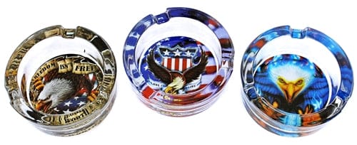 Glass Ashtray – Eagle Flag Design. 3.25″. 6 Ashtrays In A Box Display.