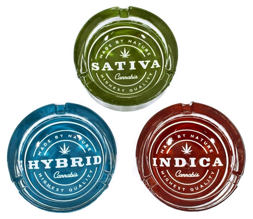 Glass Ashtray – Indica Sativa Hybrid Design. 6ct.