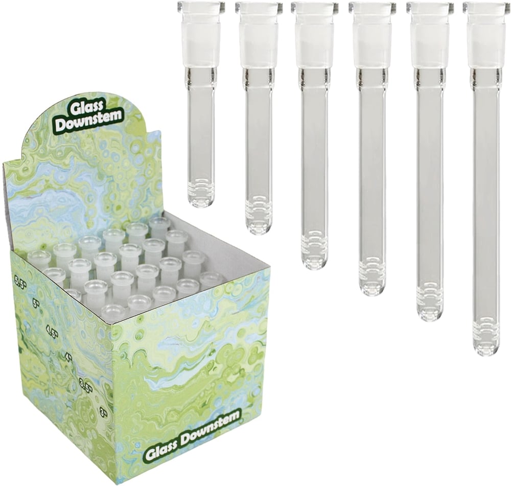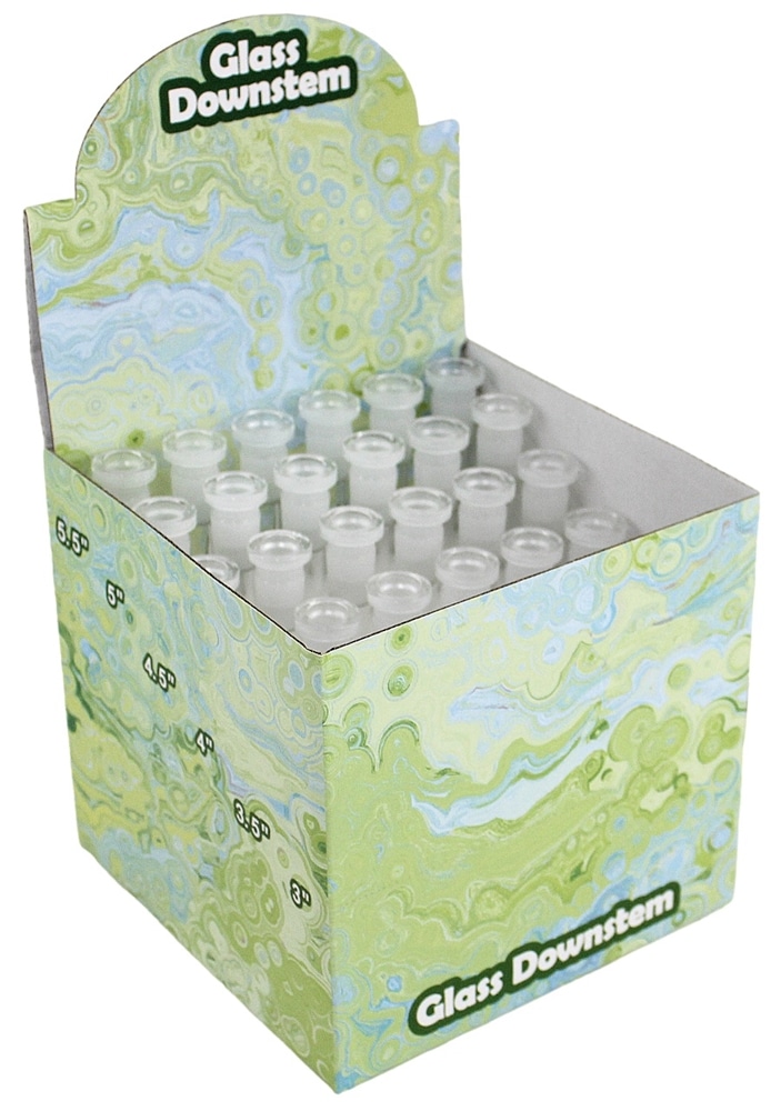 Glass on Glass Flush Top Low Pro Down Stems. 14mm On 19mm. 36 Downstems in a Box display.