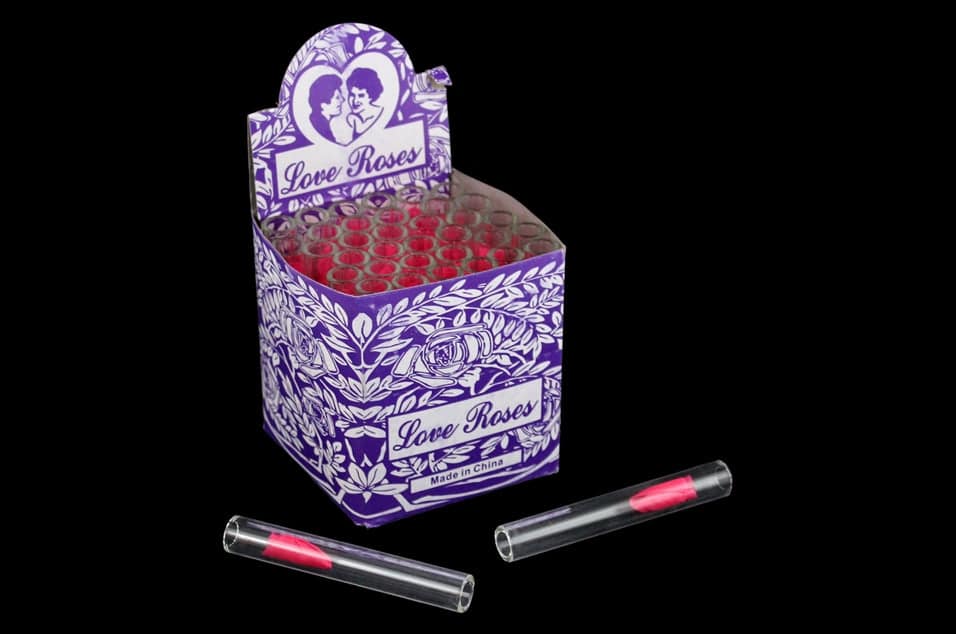 Glass Tube Love Roses 36pc Open End. 12mm x 2mm x 80mm. 36 Tubes In A Box Display.