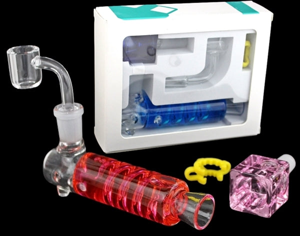 Glycerin Chiller Dual Kit – Liquid Filled Coil Hand Pipe Kit with Banger and Bowl. Colors May Vary. 5″. 1ct.
