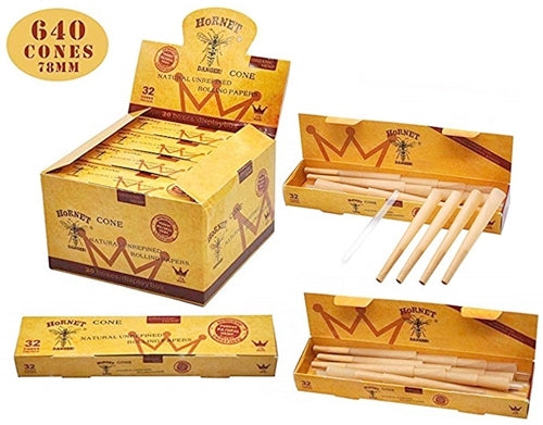 Hornet Natural Hemp Cones – 1 1/4. 20 Packs In A Box Display with 32 Cones Per Pack.
