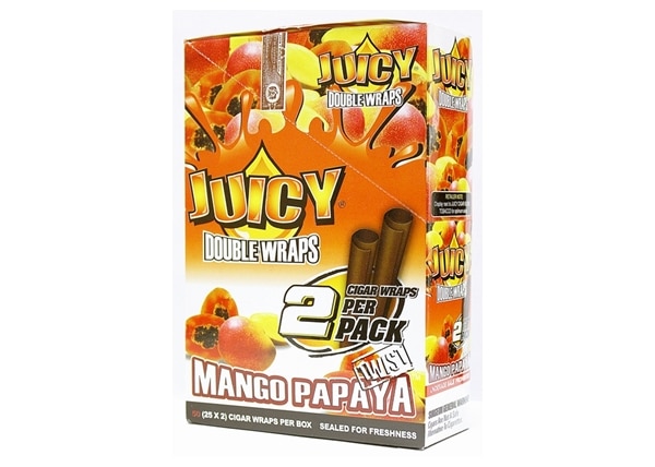 Juicy Double Wraps – Mango Papaya. Box Contains 25 Packs With 2 Cigar Wraps Per Pack. 1ct.