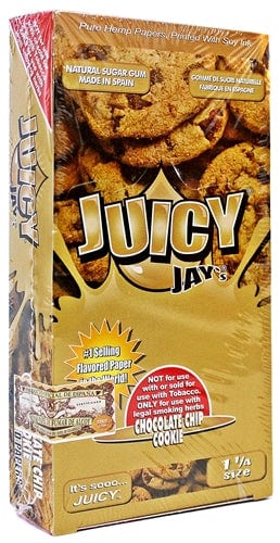 Juicy Jays Rolling Paper – 1 1/4 Chocolate Chip Cookie. Box Contains 24 Booklets With 32 Leaves Per Book. 1ct. NOT FOR USE WITH OR SOLD FOR USE WITH TOBACCO. ONLY FOR USE WITH LEGAL SMOKING HERBS.