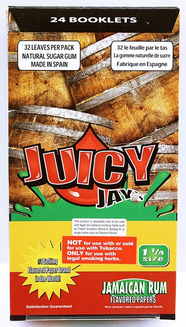 Juicy Jay Jamaican Rum Flavored. Box Contains 24 Booklets With 32 Leaves Per Book. 1ct. NOT FOR USE WITH OR SOLD FOR USE WITH TOBACCO. ONLY FOR USE WITH LEGAL SMOKING HERBS.