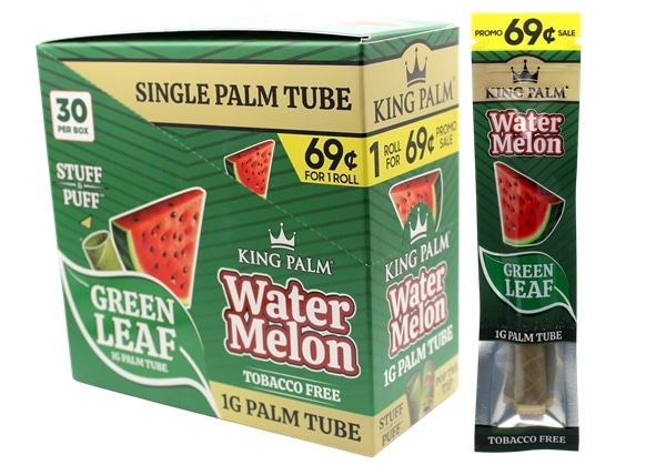 King Palm 1g Palm Tubes – Watermelon. 30 Packs in a Box Display with 1 tube Per Pack.