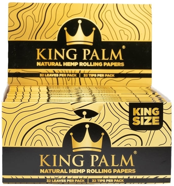 King Palm Hemp Rolling Papers – King Size – Natural. 22 Packs In a Box Display with 32 Leaves and 32 Tips Per Pack.