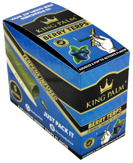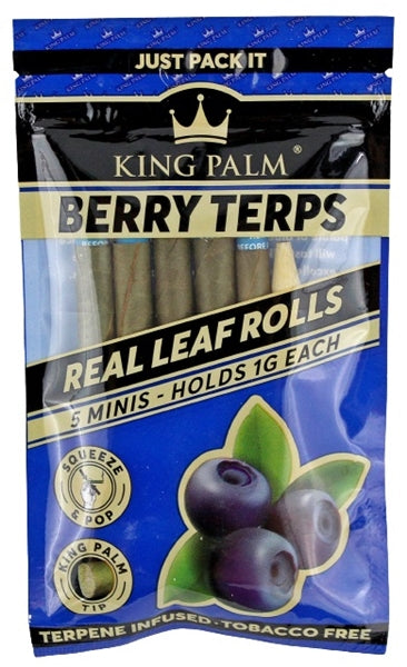 King Palm Natural Leaf Rolls – Minis – Berry Terps. 5 Rolls Per Pack With 15 Packs In A Box Display.