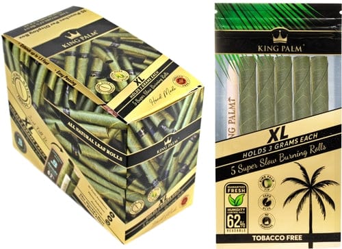 King Palm Natural Leaf Rolls – XL Size. 5 Rolls Per Pack With 15 Packs In A Box Display.