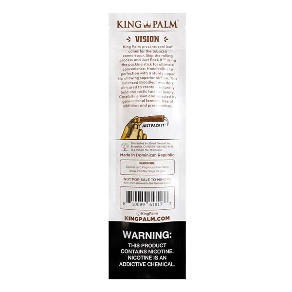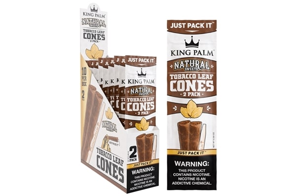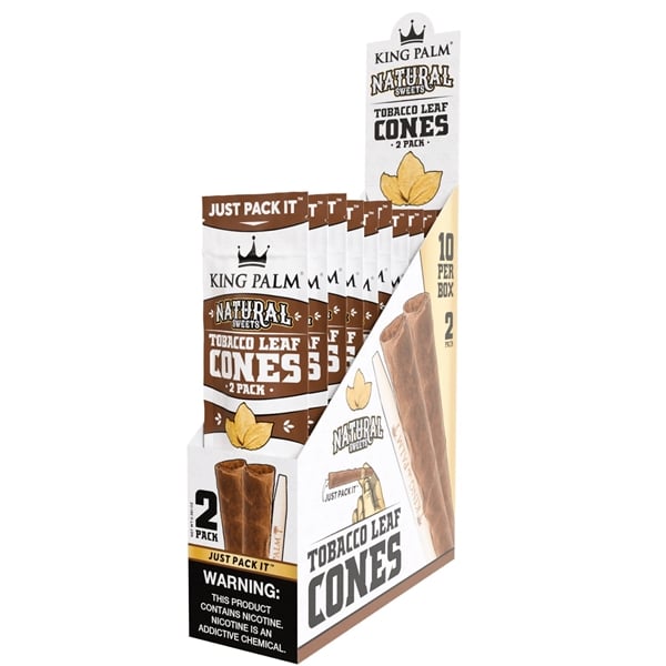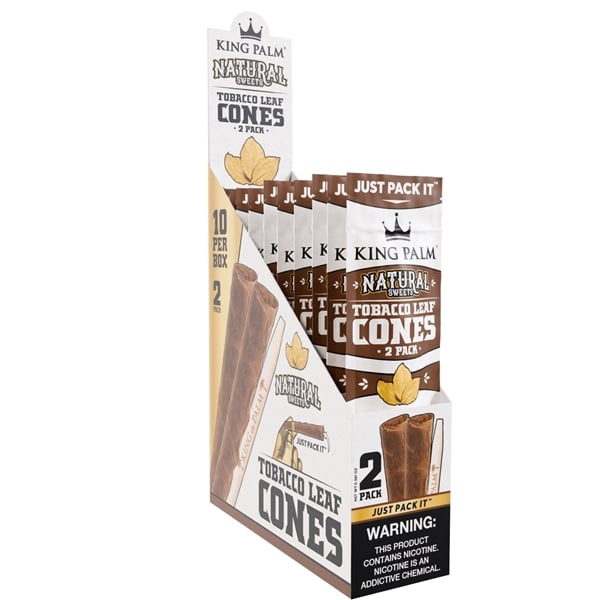 King Palm Tobacco Leaf Cones – Natural Sweets. 10 Packs in a Box Display with 2 Cones Per Pack.