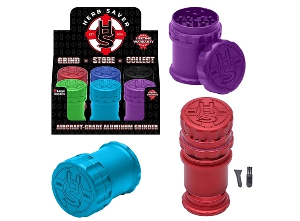 Large Aluminum Herb Saver Grinder. 3.1″ x 2.5″ x 2.5″. Colors May Vary.