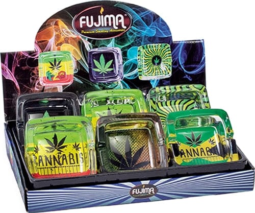 Leaf Design Glass Square Ashtray.3.5″x3.5″x1.5″.  6 Ashtrays In A Box Display.