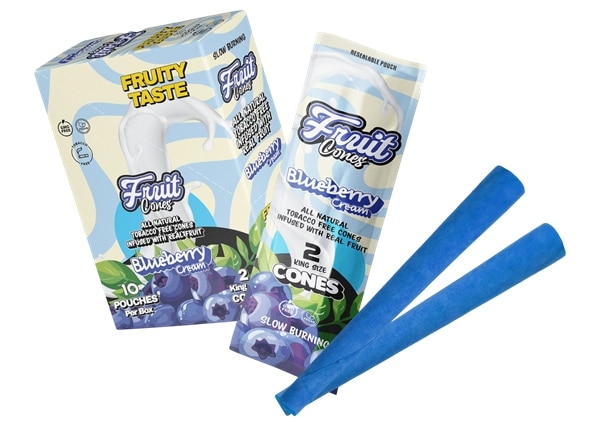 Leaf Palm Fruit Cones – Blueberry Cream. 10 Packs in a Box Display with 2 King Size Cones Per Pack.