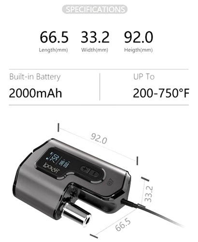 - Constant temperature between 200°F and 750°F, Safe to dab.
