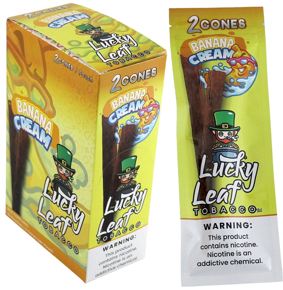 Lucky Leaf Tobacco Cones – Banana Cream. 10 Packs in a Box Display with 2 Cones Per Pack.