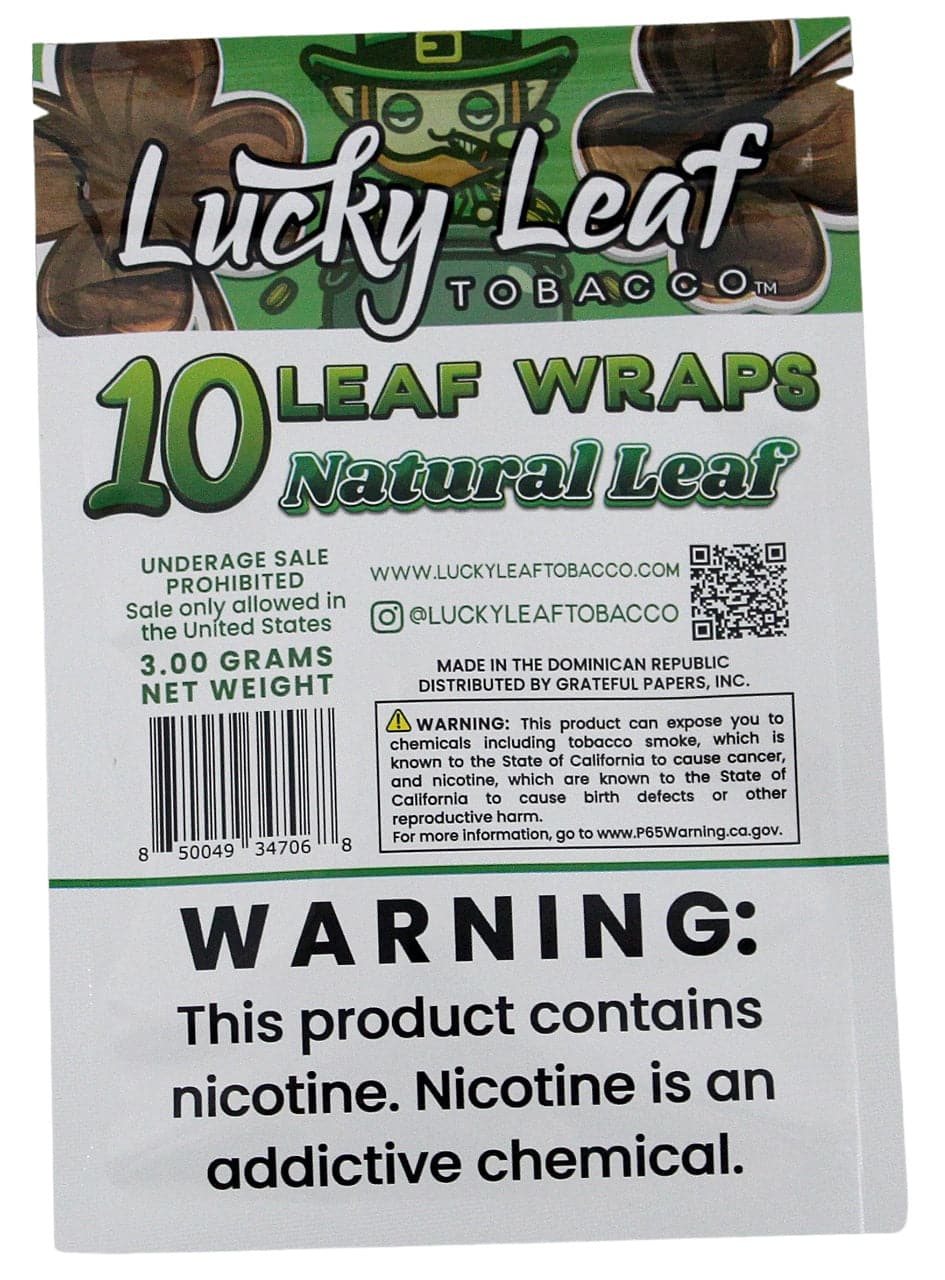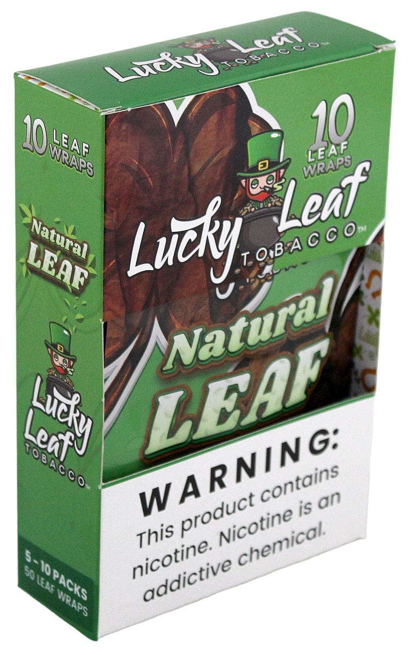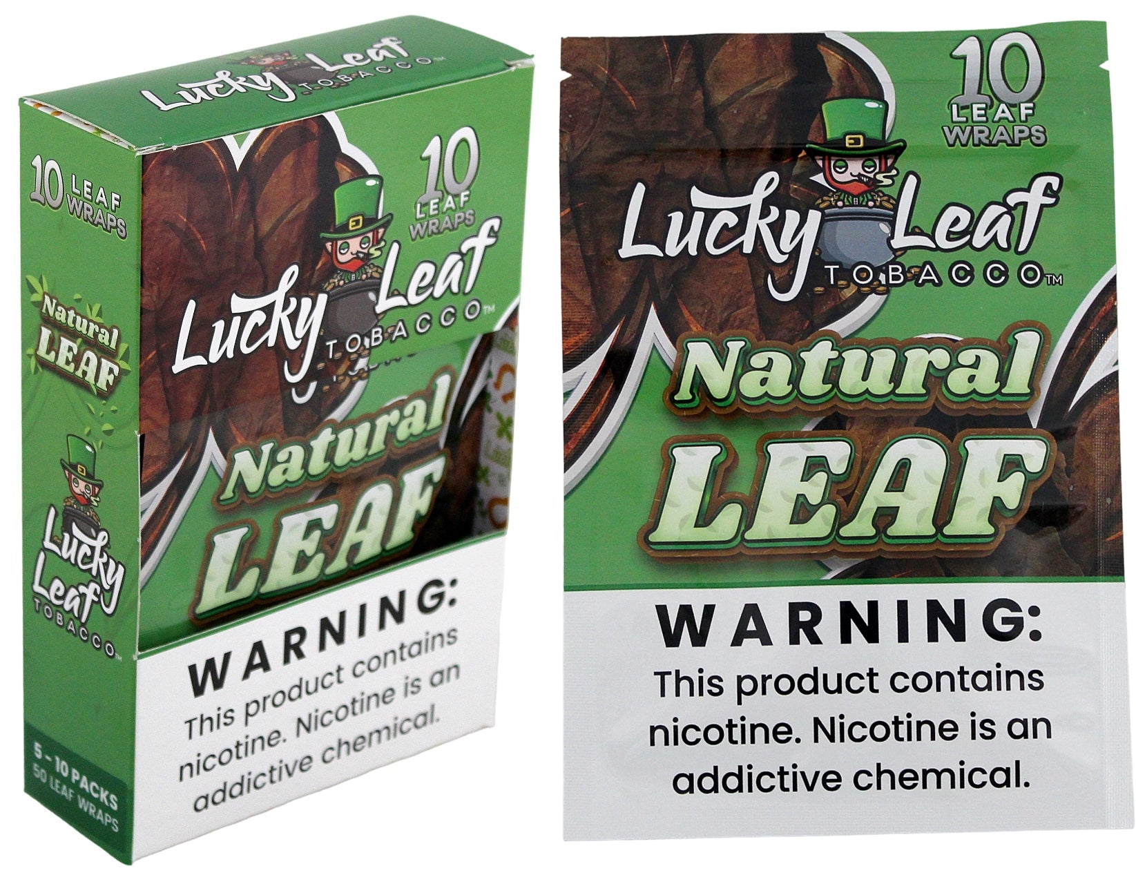 Lucky Leaf Tobacco – Natural Leaf. 5 Packs in a Box Display with 10 Leaves Per Pack.