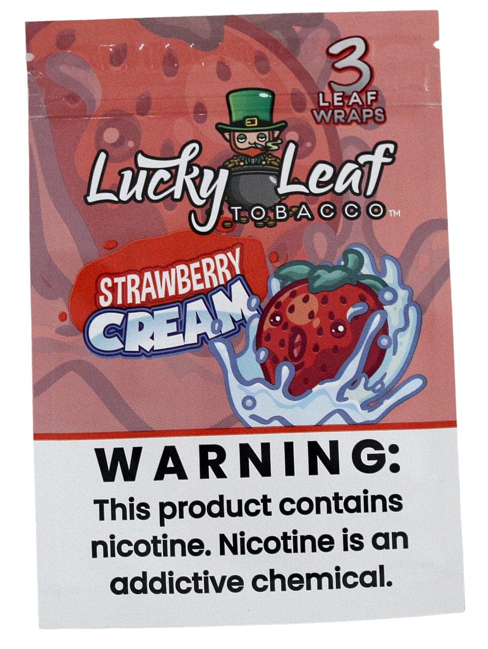 Lucky Leaf Tobacco – Strawberry Cream. 16 Packs In A Box Display with 3 Leaves Per Pack.