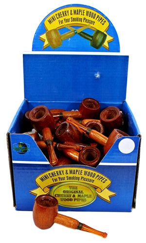 Mini Cherry and Maple Wood Pipes. 3.5″. 36 Mini Pipes In A Box Display.