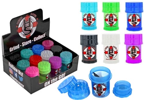 Mini Herb Saver Grinder Stash. 1.5″ X 2.5″. Colors May Vary. 12 Grinders In A Box Display.