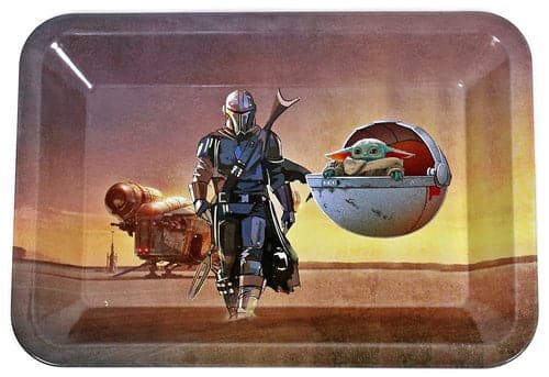 Mini Metal Rolling Tray – Mando and The Child. 5″ x 7″. 1ct.
