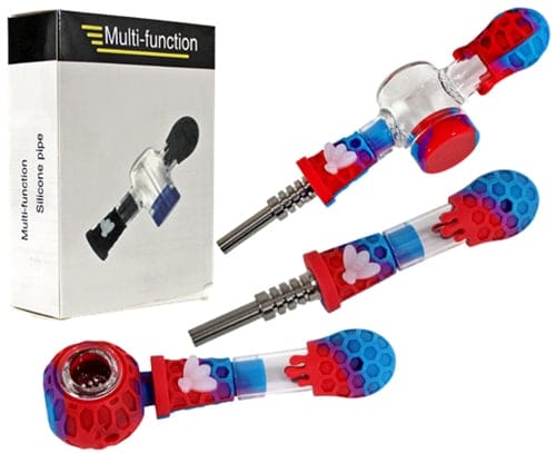 Multi-Function 3 in 1 Silicone Pipe Nectar Collector. Colors May Vary. 1ct.