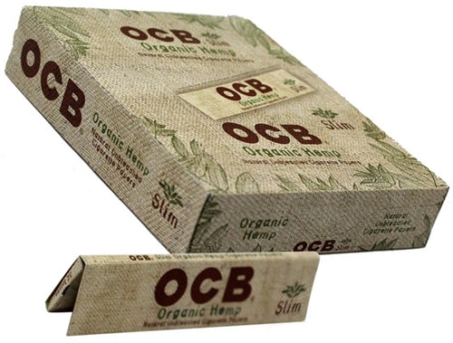 OCB Organic Hemp King Size Rolling Paper. 24 Booklets In A Box Display With 32 Leaves Per Book.