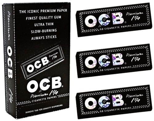 OCB Premium 1 1/4 Rolling Paper. 24 Booklets In A Box Display With 50 Papers Per Book.