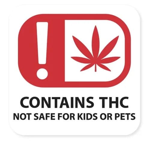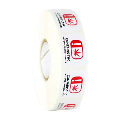 - 1000 stickers on roll – Contains THC Not Safe For Kids or Pets Warning Labels