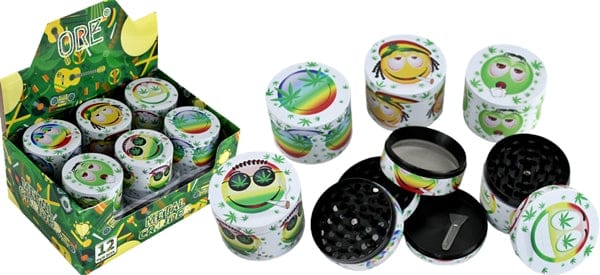 Orbez 420 Emoji Friendly Metal Grinders. 4pc. 55mm. 12 Grinders In A Box Display.