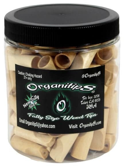 OrganitipS Wooden Rolling Tips – Fatty Size. 32 Gauge outer diameter. 100 Tips In A Jar.