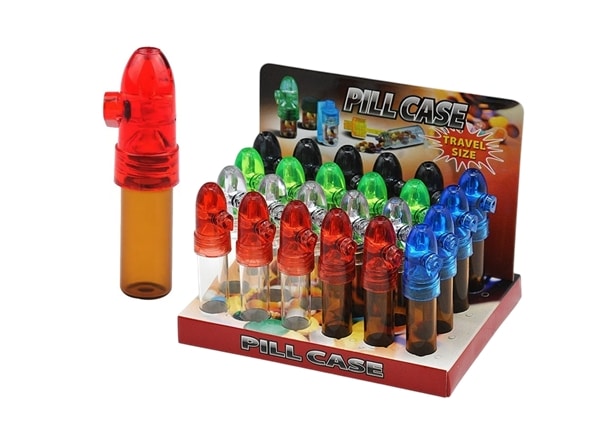 Pill Case Snuff Bullet – 82mm. 24 Vials in a Display.