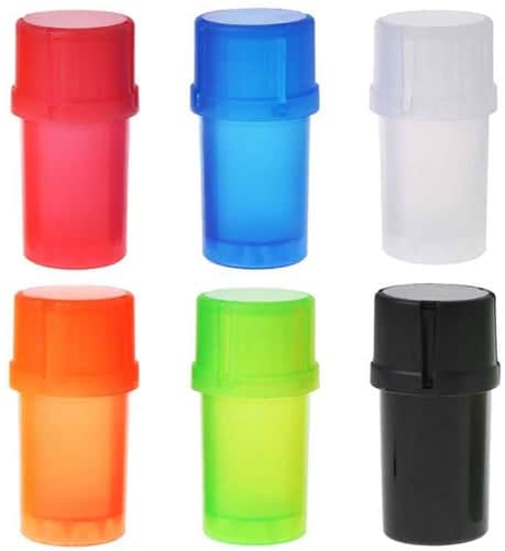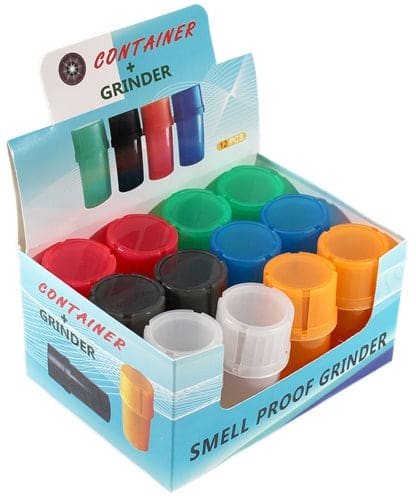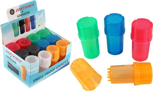 Plastic Grinder Stash Jar Container Assortment. 12 Container Grinders In A Box Display.