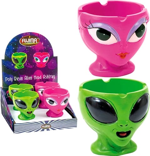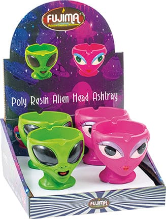 Poly Resin Alien Head Ashtray. 3.5″. 4 Alien Head Ashtrays In A Box Display.