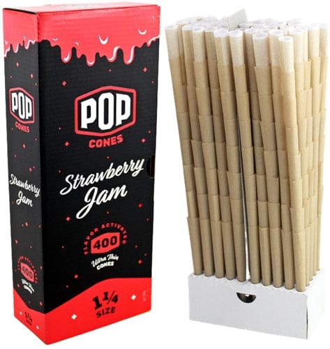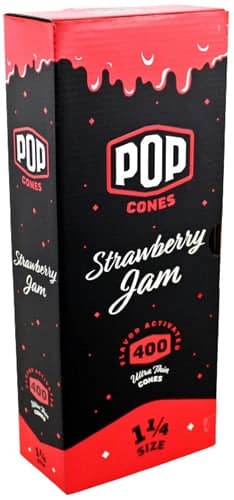 Pop Cones Flavor Activated Pre-Rolled Cones – 1 1/4 – Strawberry Jam. 400 Cones In A Box.