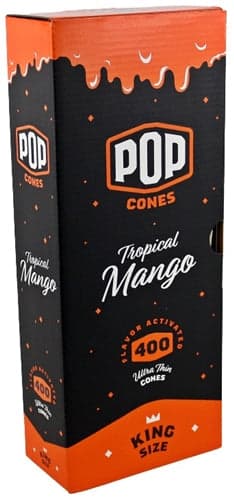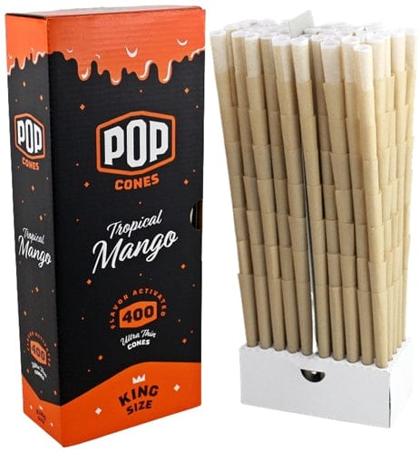 Pop Cones Flavor Activated Pre-Rolled Cones – 1 1/4 – Tropical Mango. . 400 Cones In A Box.