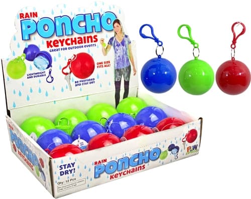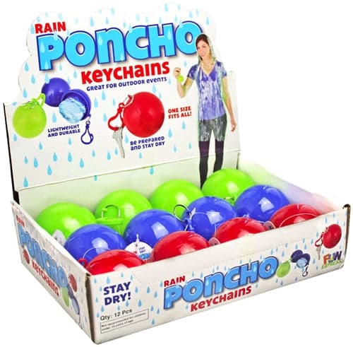 Rain Poncho Key chains. 12 Ponchos In A Box Display.