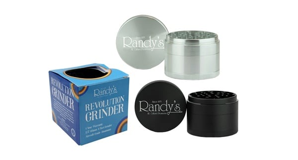 Randy’s Revolution Grinder is a 4 part grinder made of premium aircraft grade aluminum that includes a storage bag, premium scoop.