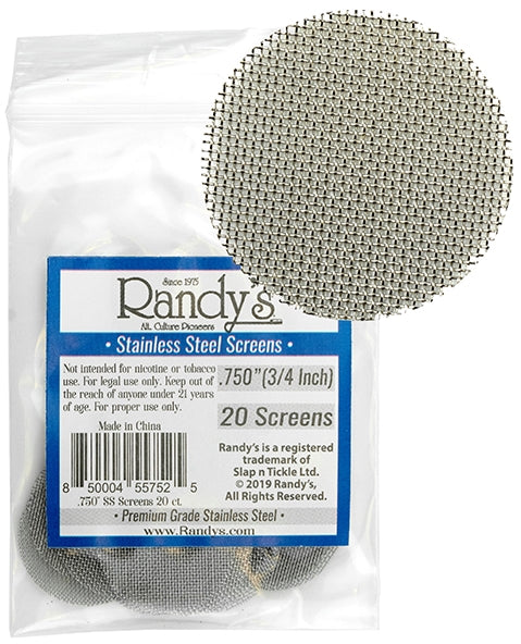 Randys Stainless Steel Screens Jar 36pk – .750″. 36 Packs With 20 Screens Per Pack. 720 Screens Total.