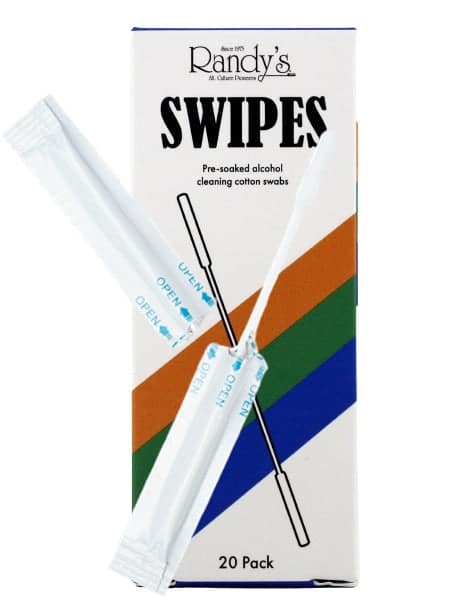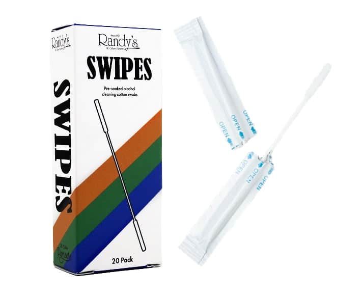 Randy’s Swipes Pre-Soaked Alcohol Cotton Swabs. 10 Packs in a Box Display with 20 Swabs Per Pack.