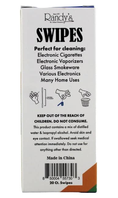 Cleaning your electronics can be a nightmare but the Randy’s Swipes are a dream come true! The Randy’s Swipes were made specifically to clean your electronics. These individually wrapped cotton swabs have been pre-soaked in alcohol. Perfectly measured to ensure not to damage your smoking devices, without compromising the effectiveness of the Swipe. A mindful solution to your daunting tasks.