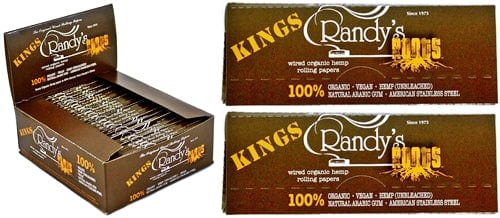 Randys Roots King Size Wired Organic Hemp Rolling Paper. 25 Booklets Per Box With 24 Leaves Per Book.