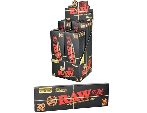 Raw Black Cones King Size. 12 Packs in a Box Display with 20 Cones Per Pack.