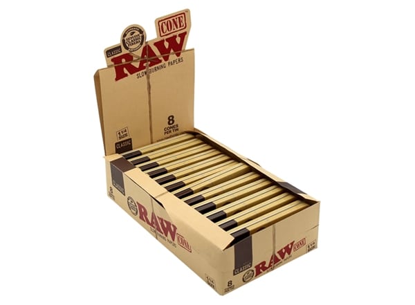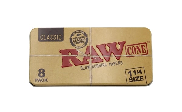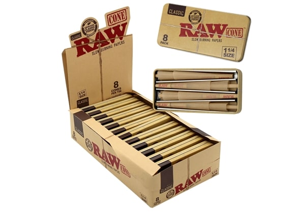 Raw Classic Cones 1 1/4 with Tin Container. 12 Tins in a Box Display with 8 Cones Per Tin.