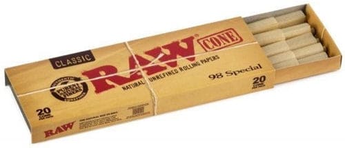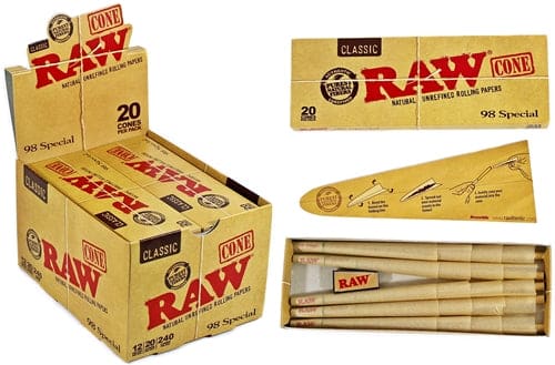 RAW Classic Cones 12pk – 98 Special. 12 Packs Per Box With 20 Cones Per Pack. 240 Cones Per Box. 1ct.