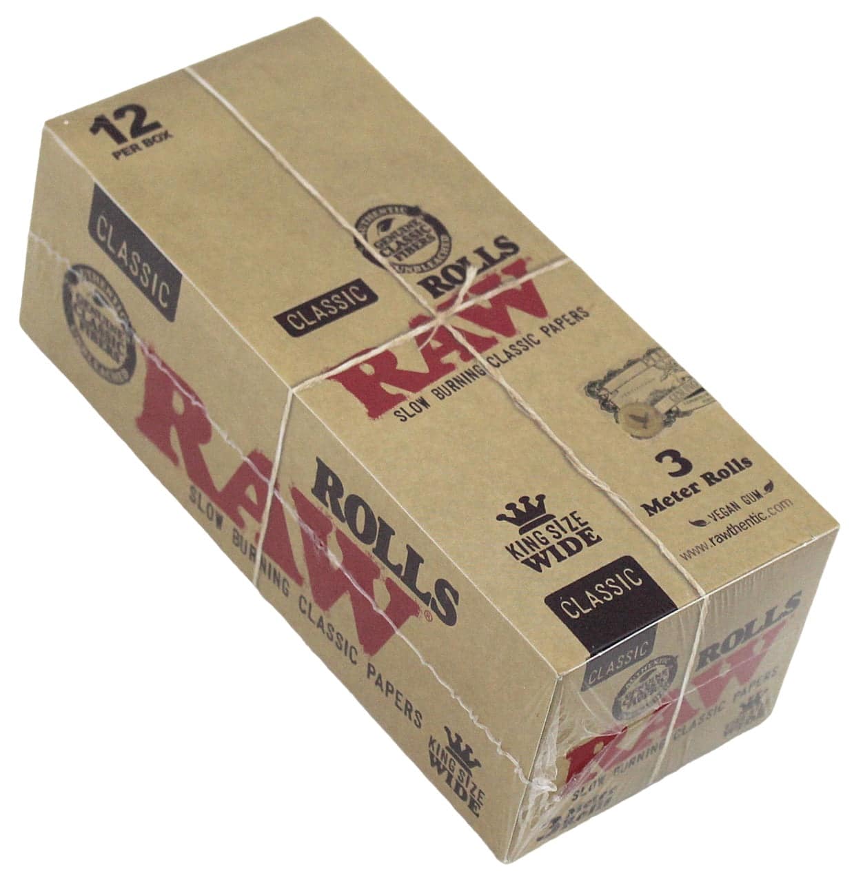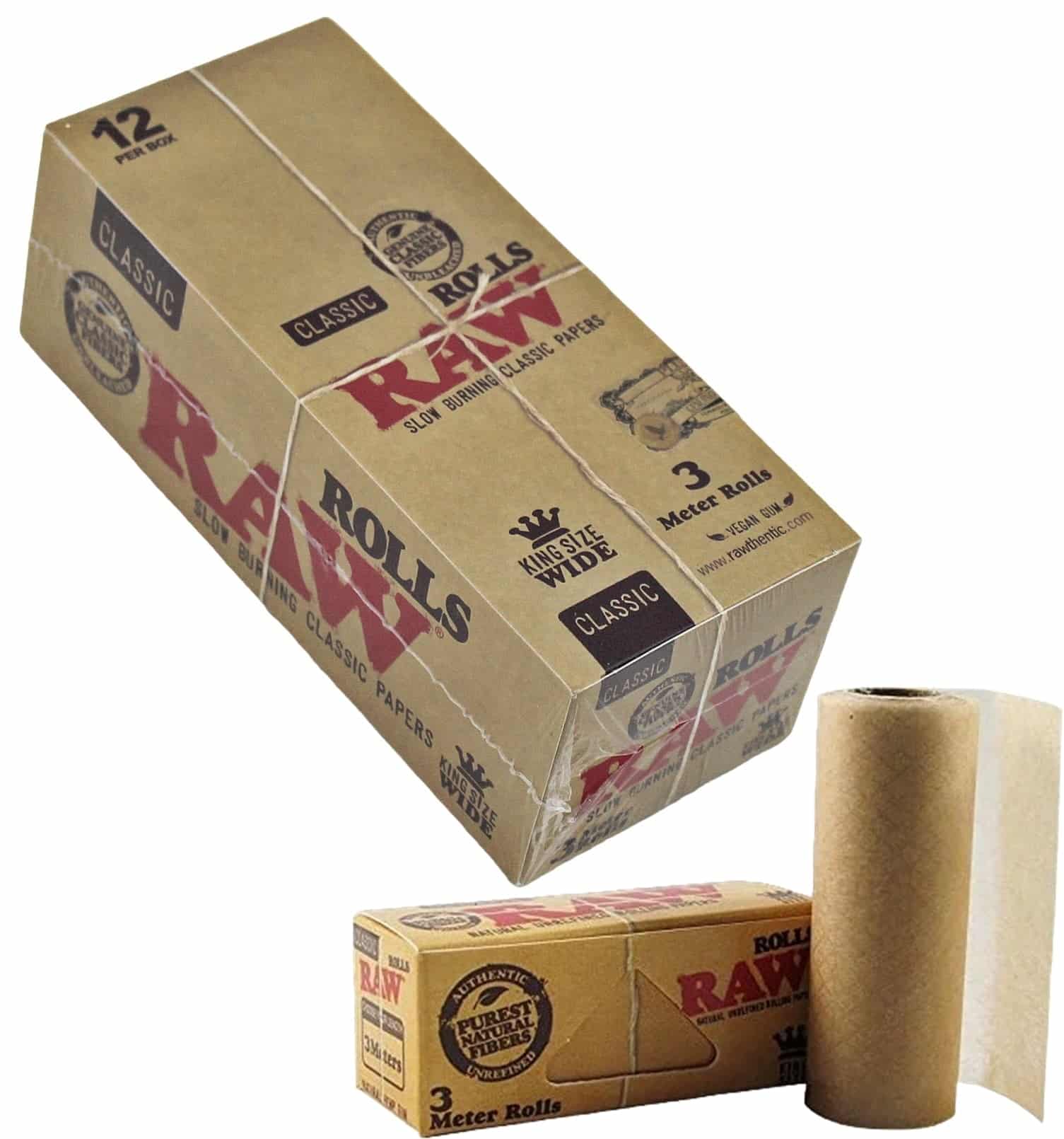 Raw Classic Papers 3 Meter Rolls – King Size Wide. 12 Rolls in a Box Display.