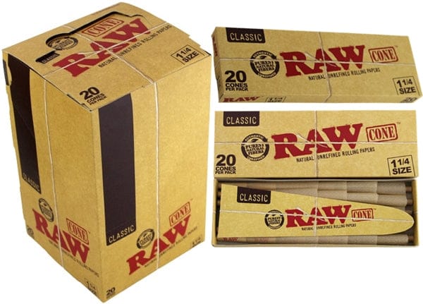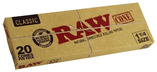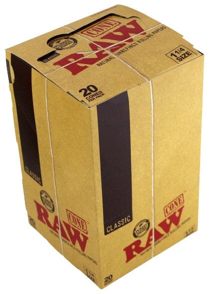 Raw Classic Pre-Rolled Cones 1 1/4. 12 Packs In A Box Display with 20 Cones Per Pack.