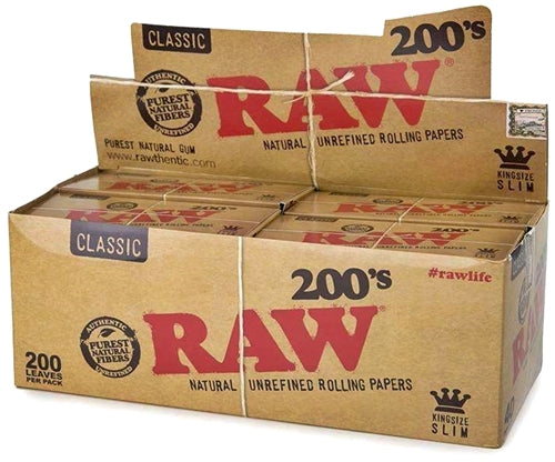 Raw Classic Rolling Paper – King Size Slim 200s. 40 Packs In A Box Display With 200 Leaves Per Pack.